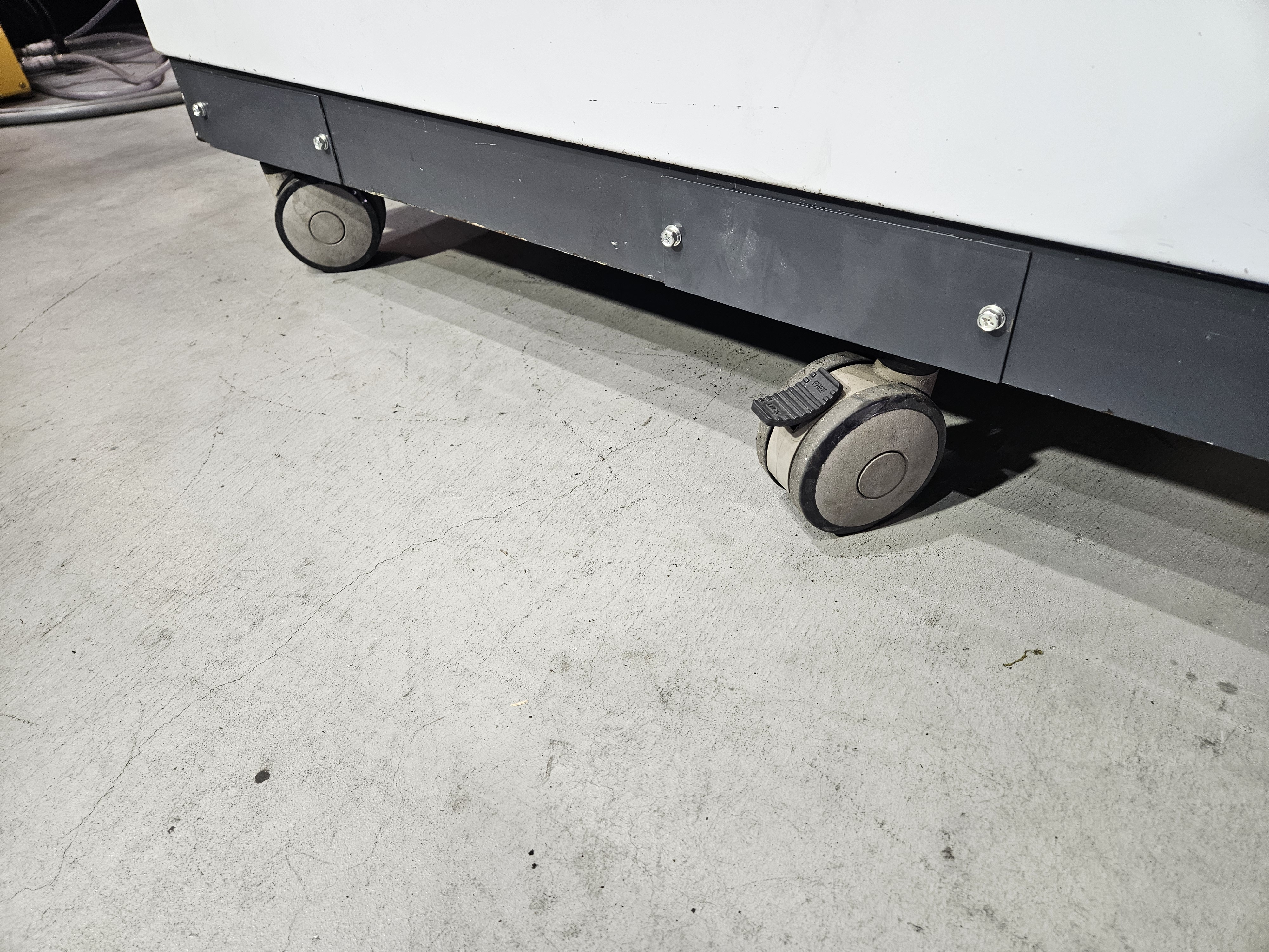 320kgの重量がありますが弊社にて大型キャスターを4点取付していますので取り回し楽々です。 ※このコンプレッサーはモーターが停止してから12分程度廻りっ放しになります。故障ではなく元々メーカーがモーターを冷却する為に無負荷運転をします。この時間を短くしたり無くしたりする事がどうやってもできない仕組みです。(メーカーに聞きました。)どうしてもその運転状態が気になる方はご購入をご遠慮下さい。しかしモーターが回っていてもとても静かなので工場が超静かでないとあまり気になりません。 |