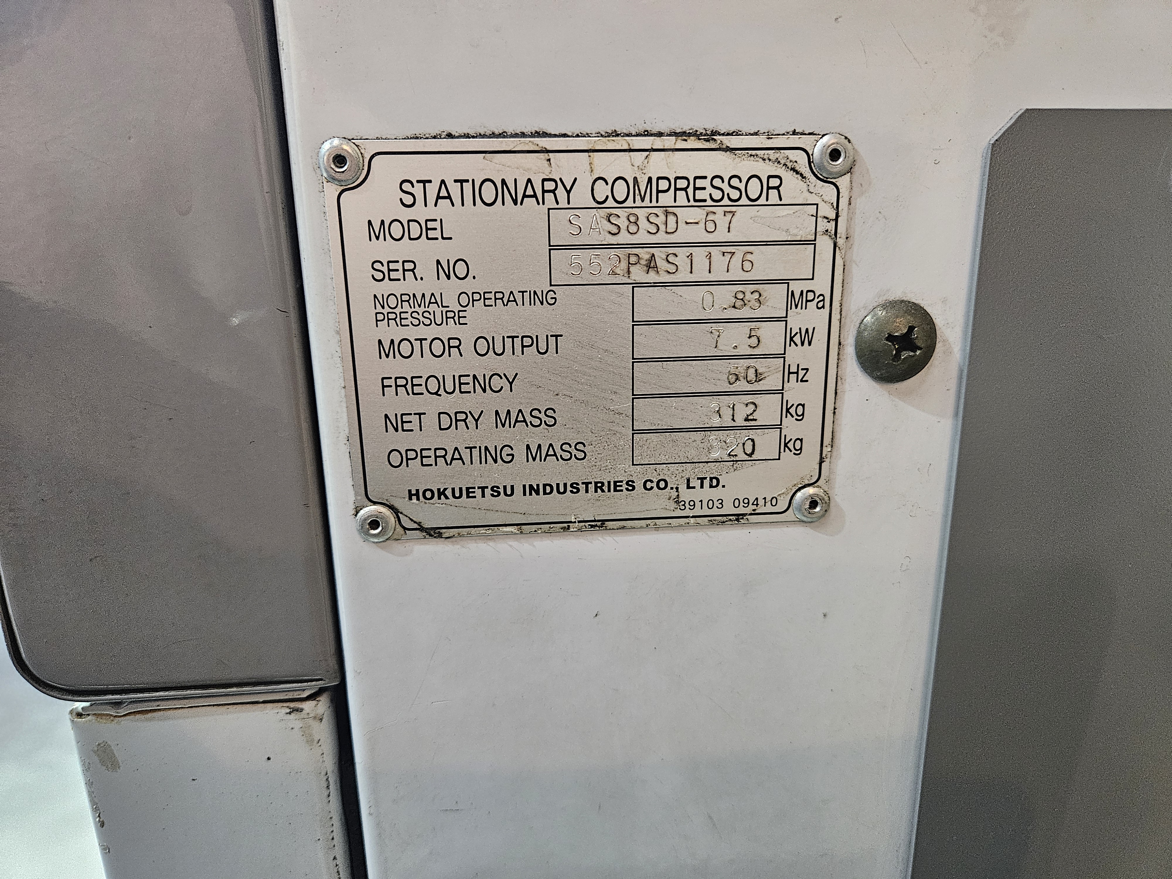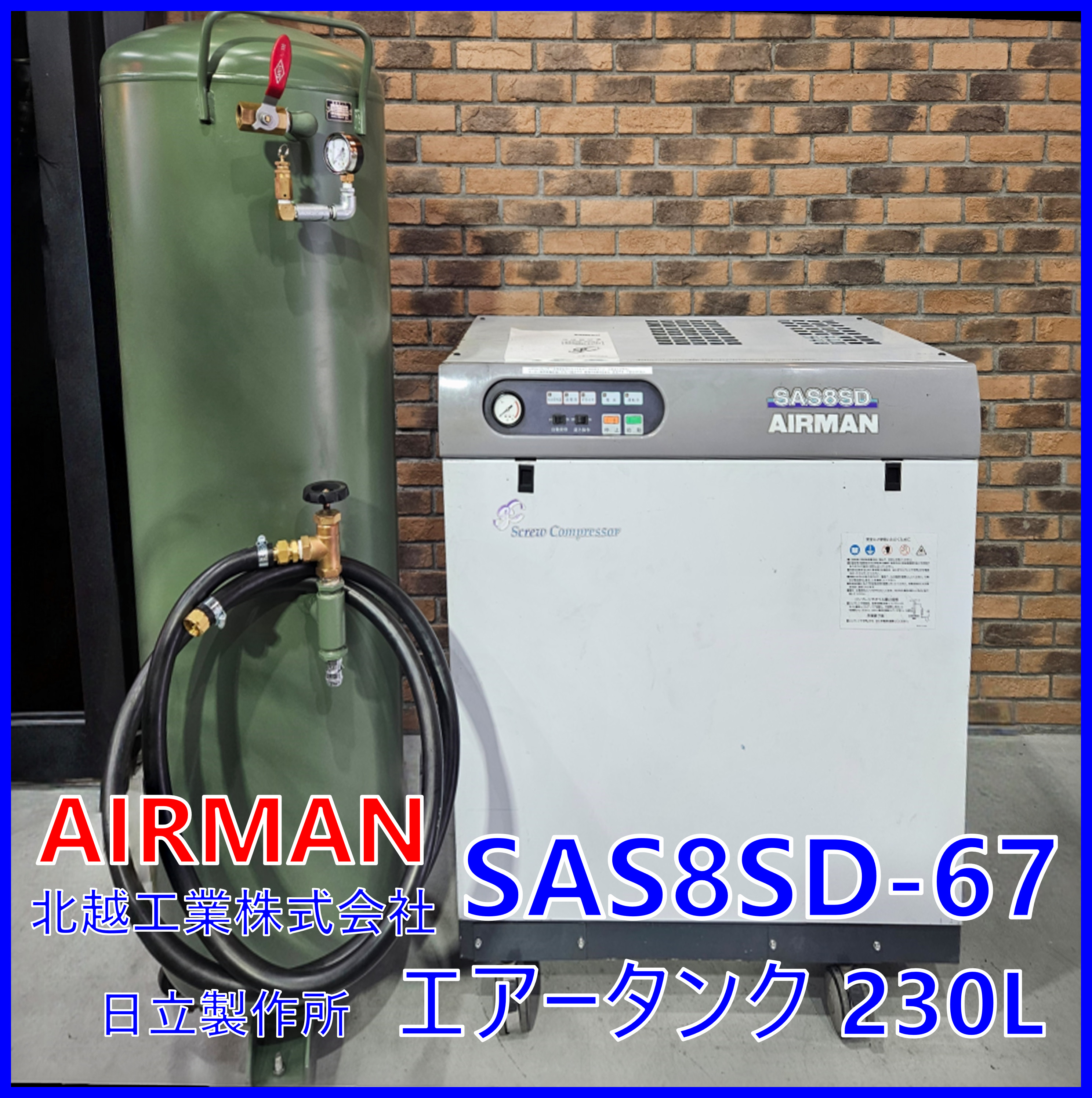 | メーカー及び商品名 | 北越工業株式会社 AIRMAN スクリューコンプレッサー 10馬力 エアードライヤー内蔵モデル (エアードライヤー動作確認済) |