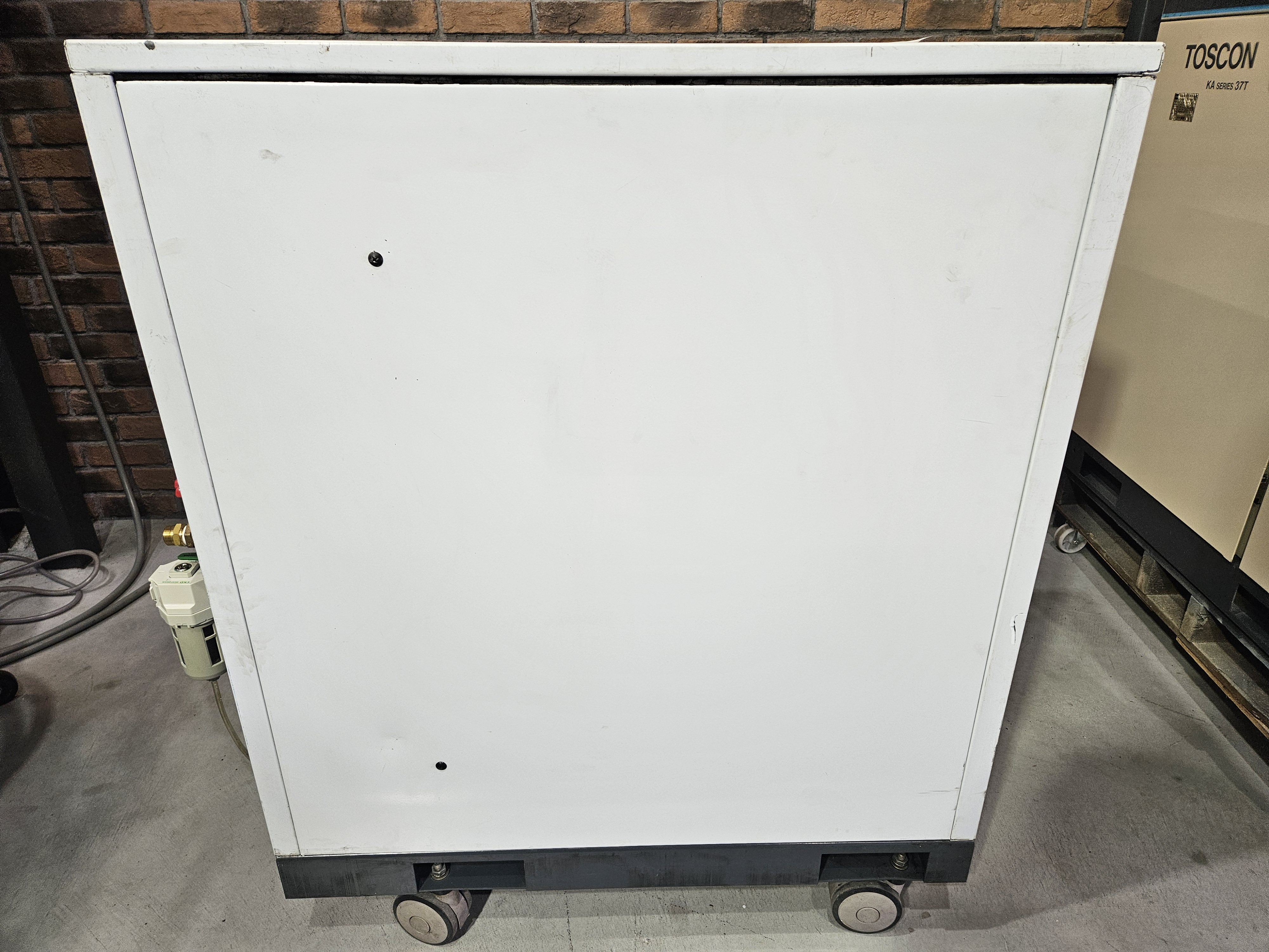 大好評!当社オリジナルウェットブラストマシンRebornの一番パワーのあるスペシャル仕様に使える静かなスクリューコンプレッサーをご用意致しました。メンテナンス性抜群です。かんたんに各パネルを取り外して裸にして整備出来きます。吐出し空気量も余裕があります。
