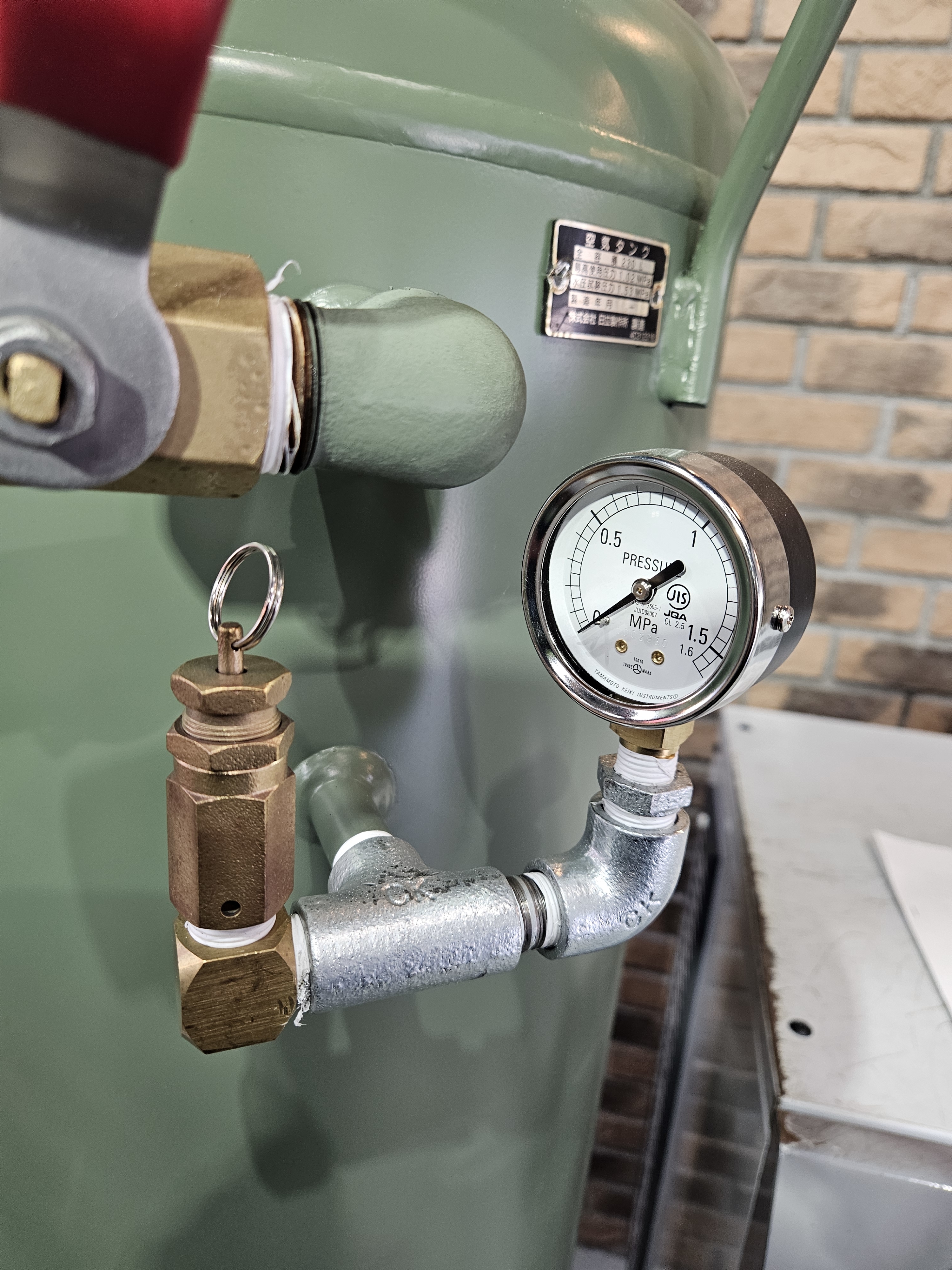 圧力計・安全弁・ホース・金具付きで、塗装済みです。